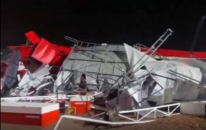 Sin embargo, iniciada la noche, la felicidad tornó a tristeza y lamento, como consecuencia de una violentísima tormenta de lluvia y vientos que destrozó stands, y afectó incluso a máquinas agrícolas.